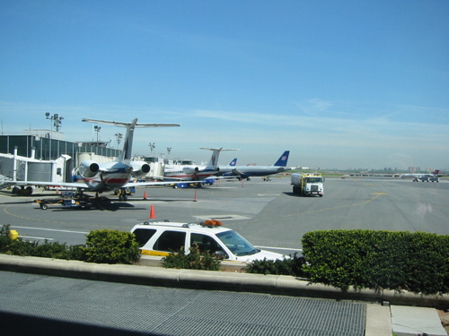 本日から2泊3日の出張。目的地はシカゴ。朝早く起きてラガーディア空港目指す。ところが高速が大渋滞。困った困った困った。出発1時間前にチェックインしなければ航空券の発券をしてくれないので、あせった。なんとか1時間15分前に到着。ふー。