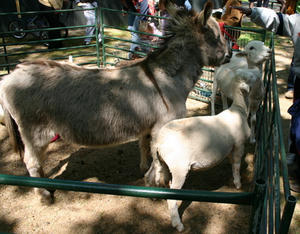 下の写真は公園内の動物とふれあえるコーナー。子供達が草をあげています。