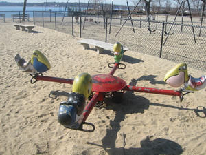 その砂場にある下の写真の遊具が我が娘たちのお気に入りだ。時間を忘れてずーーと遊んでいる。なにがそんなに楽しんだろう。