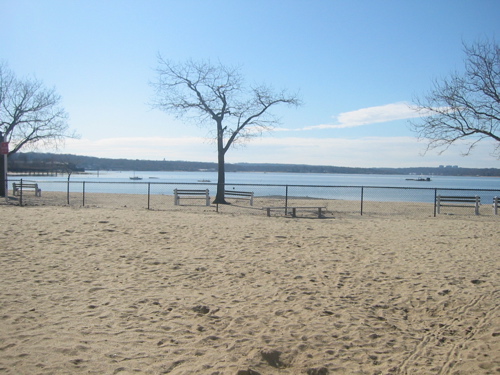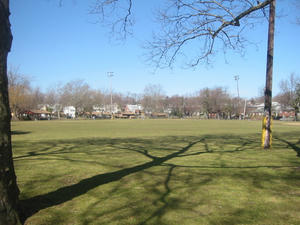 右手には広すぎる広場がある。時々野球等をしている子供たちが居るが、今日は寒いので誰もいない。それにしても贅沢な公園だ。