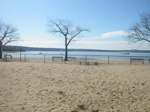 一本道の突き当たりが砂場になっている。というか海岸だ。