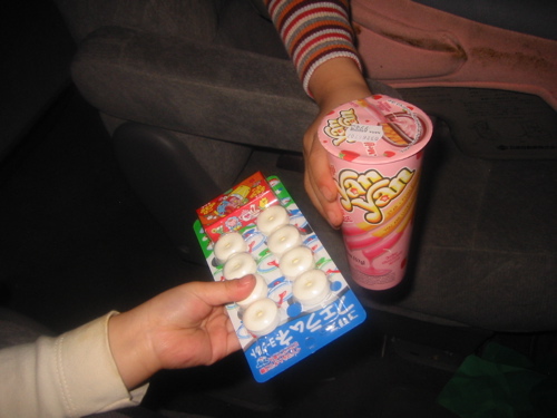 買い物を終えて車へ。夕食前と言うのにお菓子を食べ始めてしまいました。まぁいいか。