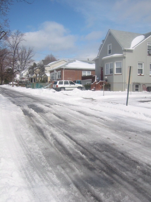 家の前の道路はこんな感じ。除雪車が通った直後の写真です。さーて雪かき、と思ったら、、、。雪じゃなくて氷だった。シャベルはまったく歯が立たず、足下が滑って大変危険。