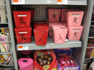 帰宅途中にみかんを買いに Stop & Shop へ。そしたらレジの前に、漢字で「愛」と「友」とかいてあるバレンタイン用のお菓子を発見。誰かに渡してみようかな。。