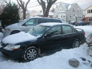 昨晩から雪が降り、明け方にはみぞれになった。路面はちょうどいい感じに凍っており、とっても危ない感じ。ツルツルすべる歩道を渡ってアコードに乗り込んだ。