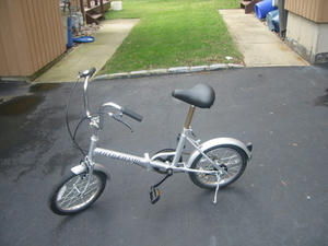 我が家は昨年10月に引っ越したので、いつも行っているガソリンスタンドから少し遠くなった。そこで自転車登場!。日本で景品でもらった折りたたみ自転車。これを車に積んでいけば、ガソリンスタンドから家まで「らくちん」で帰れると思ったのだが。。。。。。。誤算だった。