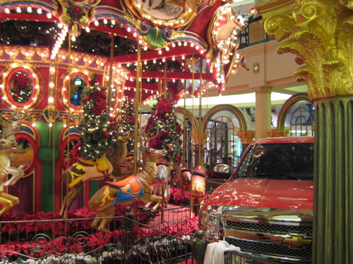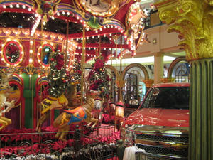 腹ごしらえも済みモール内をぶらぶらしていると、メリーゴーランドのオブジェを発見。しかも車が横に飾っている。なんとまぁ無駄なものを作ったもんだ。動かないメリーゴーランドに子供たちもがっかり。