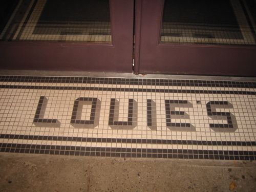 入り口のタイルにお店の名前が書いてある。こんなディテールがパパは好き。