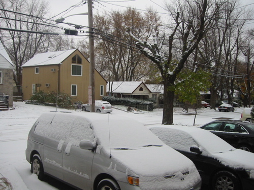 昨晩から急に冷え込んできて、とうとう気温は0度に到達。明日の天気予報を見ると「雪」。うー楽しみ。ルールルン。夜中3時頃ふと目が覚めたので外をのぞくと、うっすらうっすら降っていた。「これでは積もらないかぁ」とガックシきて寝床に入る。