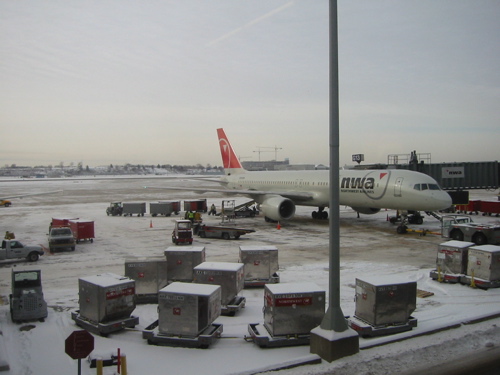 今日から一泊二日で出張。子供たちと暫く離れる寂しい気持ちを振り切っていざJFK空港へ。今回の飛行機はNorthWest航空。初めて乗る飛行機だ。朝8時出発なので、朝5時半に家を出た。余裕かなと思ったらJFK空港手前のBelt PKWYでまさかの渋滞。いやはや焦りました。