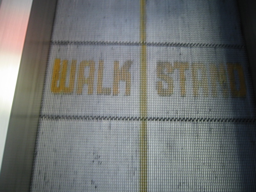 この空港でおもしろいもの発見!!それはムービングウォーク。立つ人と歩く人がきちんと分けられている。ちょっと珍しかったので記念にパチリ。