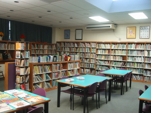 下の写真は図書館の様子。毎週学校から本を借りてくるが、ここで読みたい本を選んでいたんだねぇ。